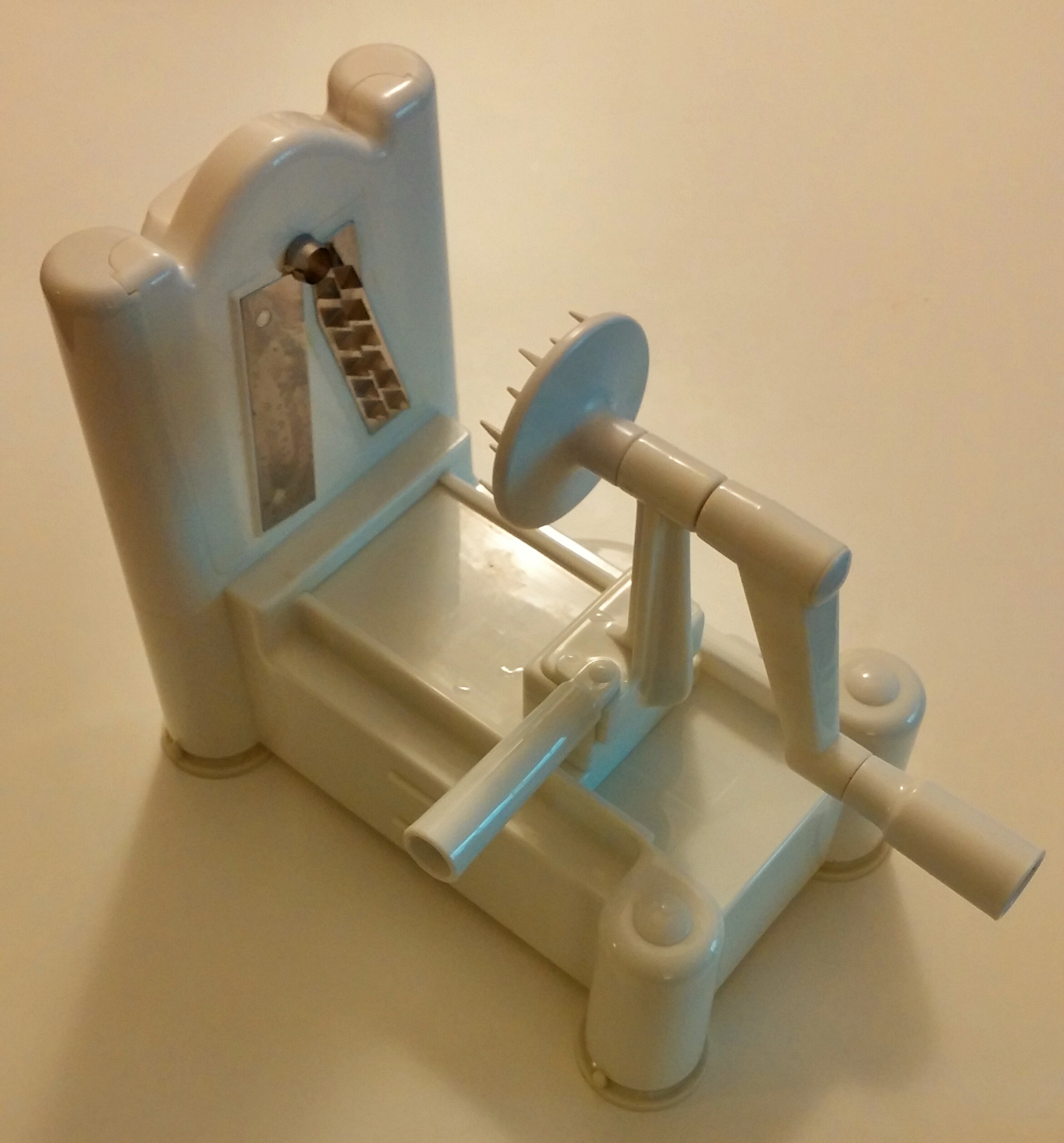 Spiralize the zucchini. [Never heard of spiralizing? It’s what a spiralizer does. Never heard of a spiralizer? See photo below.